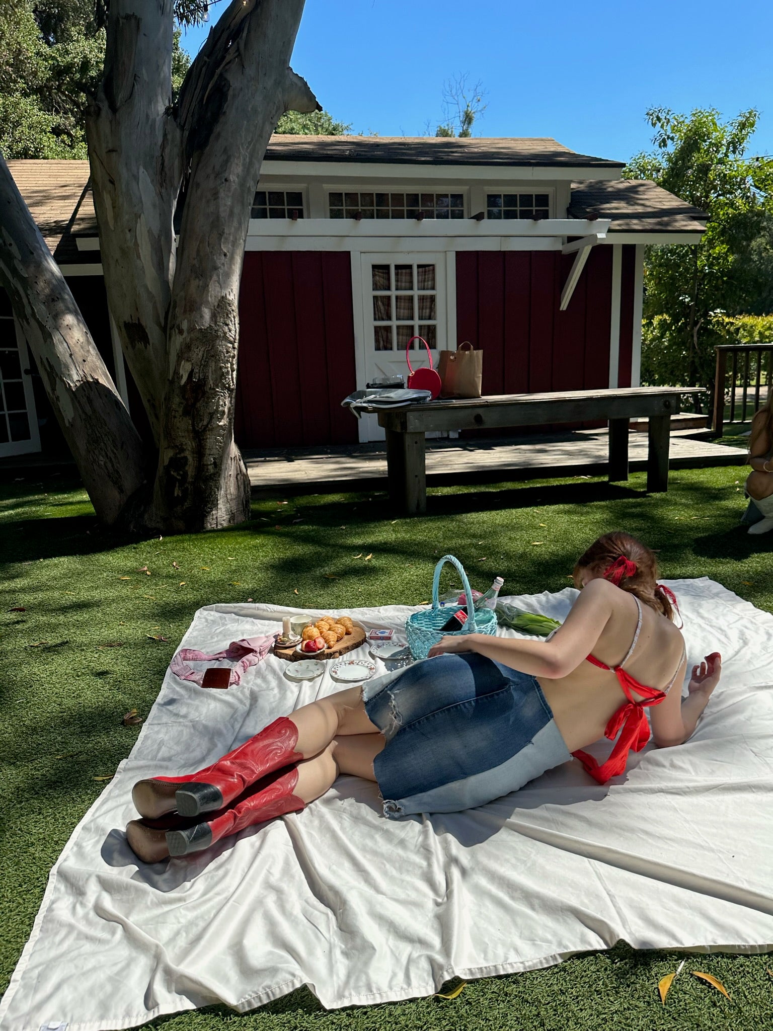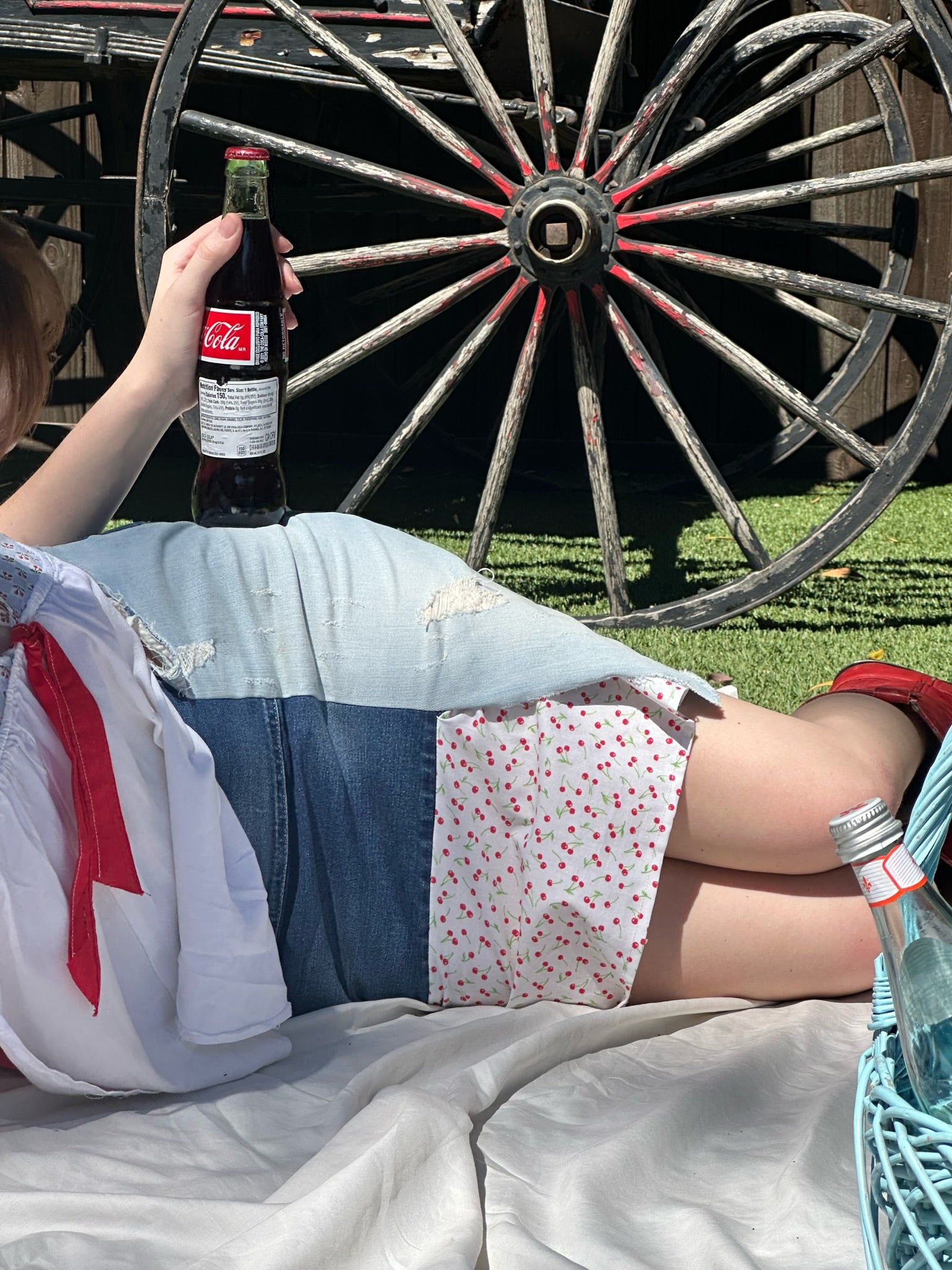 3 different fabrics stitched together to create this one of a kind midi skirt